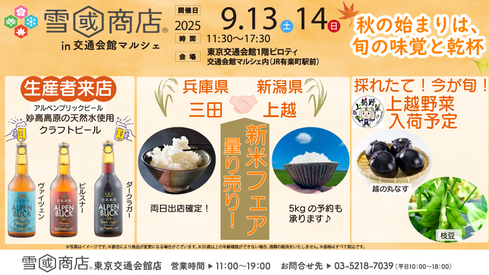 雪國商店in交通会館マルシェ 出店のご案内 9月13日(土)、14日(日)開催